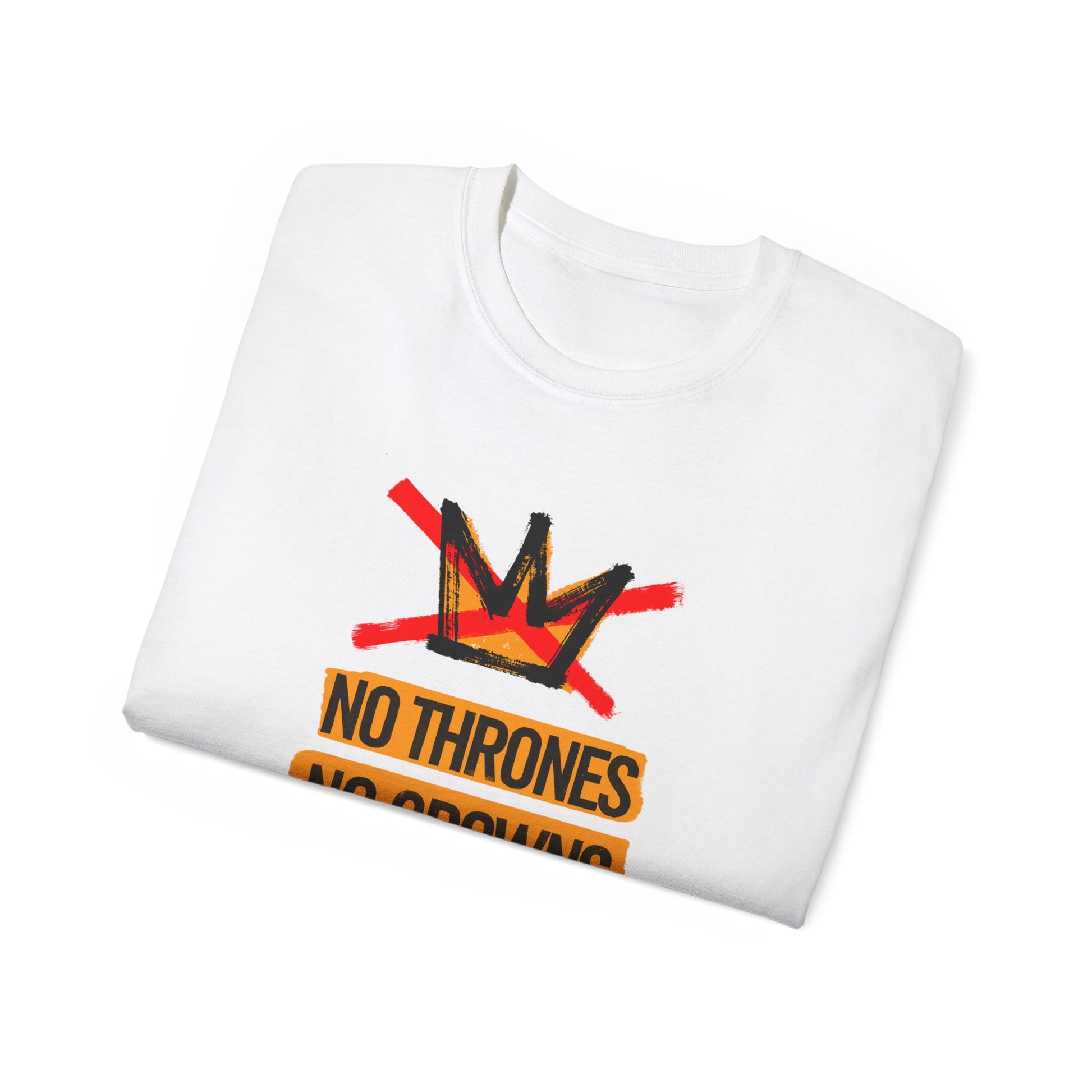 A unisex cotton tee perfect for No Kings or any other protests. Show the world that the United States does not and never will have a king with a shirt that's comfortable in every season.